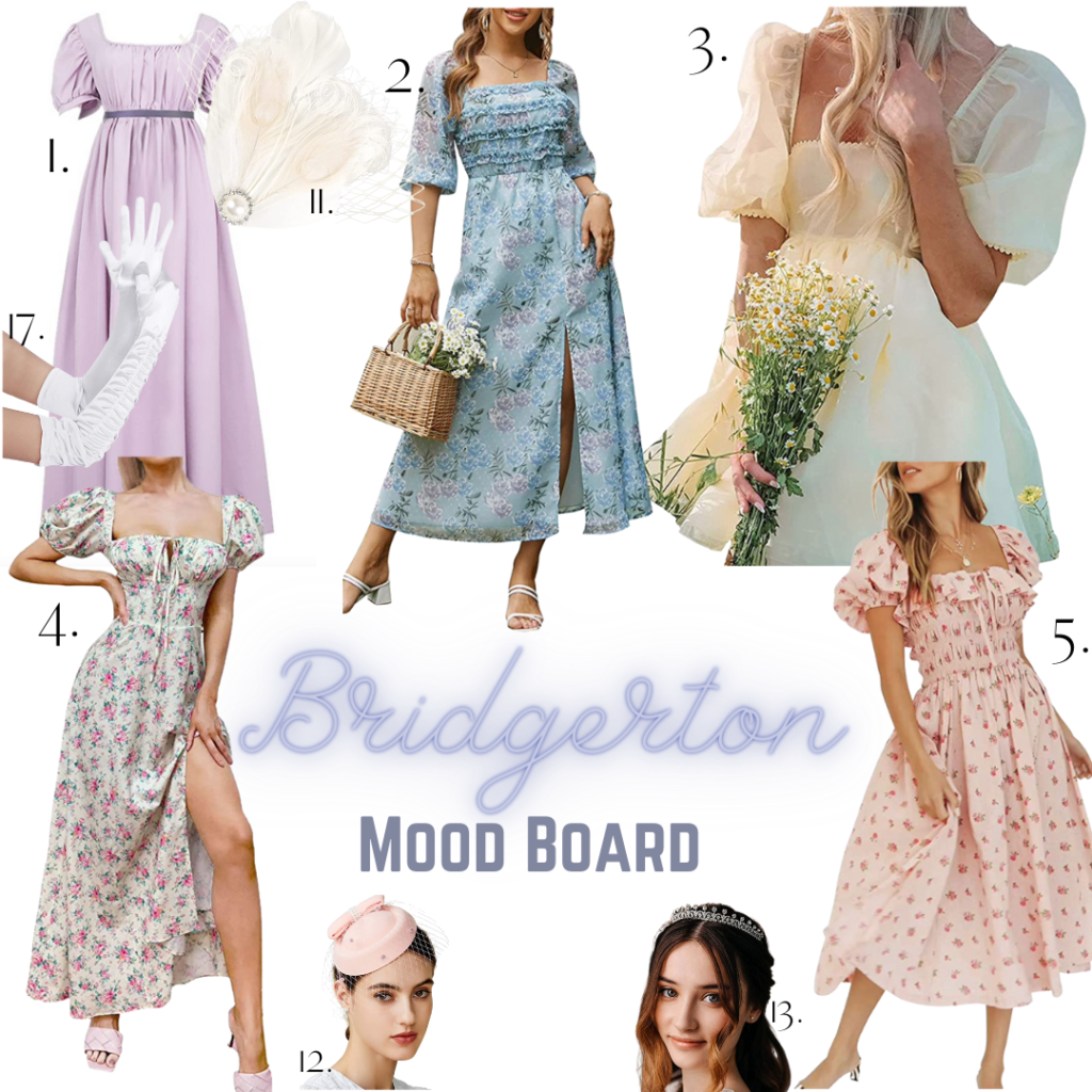 Dearest gentle reader, if you’re here, I hope you have seen my event listing for my upcoming Bridgerton party! For my history buffs, I must acknowledge that Bridgerton is not 100% historically correct, but is, in fact, 100% entertaining. I am also obsessed with Shonda Rhimes & I am ecstatic to be putting together this fabulous party. Below is a collection of a more modern take on a Regency-style gathering. I hope you enjoy these outfit and accessory inspirations for my party, or anyone planning their own soiree!